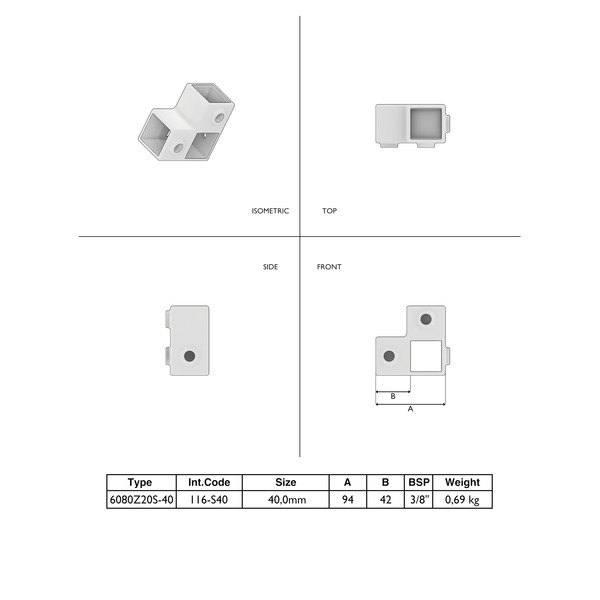 Eckstück durchgehend 40×40 mm schwarz – Typ 116