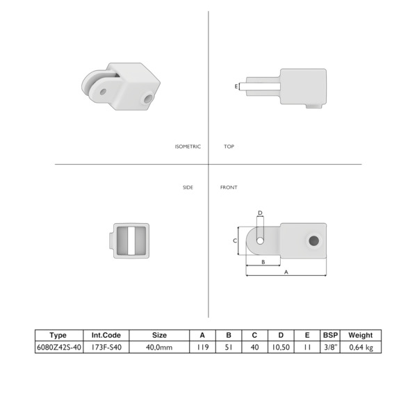 Typ 173F bietet eine verstärkte Gelenktechnik für schwere oder häufig bewegte 40×40 mm Konstruktionen. Optimal für Ladenbau, Messebau und industrielle Designsysteme.