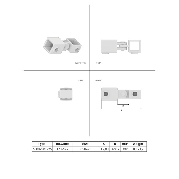Gelenkstück 25×25 mm schwarz – Typ 173-S25