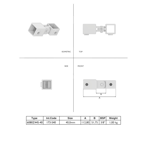 Gelenkstück 40×40 mm schwarz – Typ 173-S40