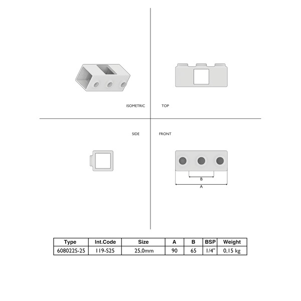 Kreuzstück durchgehend 25×25 mm – Typ 119
