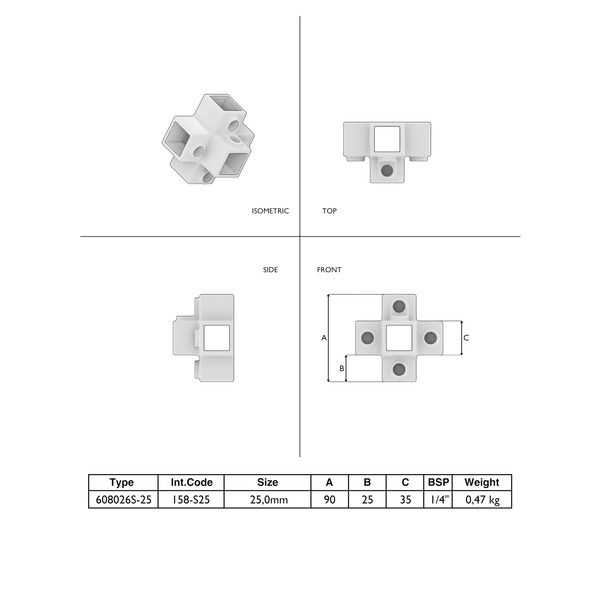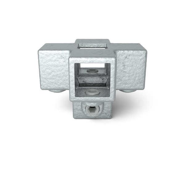 Kreuzstück zur Verbindung von 25 mm quadratischen Stützrohren in vier Richtungen.