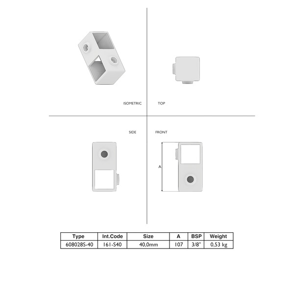 Kreuzstück vorgesetzt 90° 40×40 mm – Typ 161