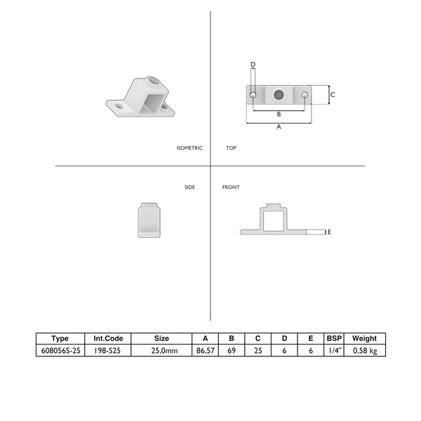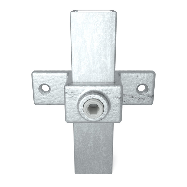 Die Typ 56S-25 Variante für 25×25 mm Quadratrohre ist ideal für kompakte Rahmen oder kleine Geländer. Die Doppellasche ermöglicht das sichere Anbringen von Zubehör wie Seilen, Netzen oder Schildern bei leichten Konstruktionen.