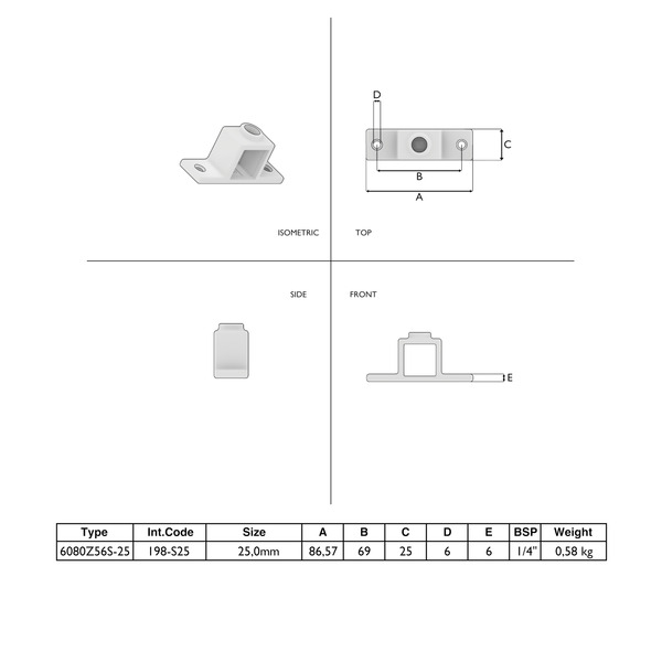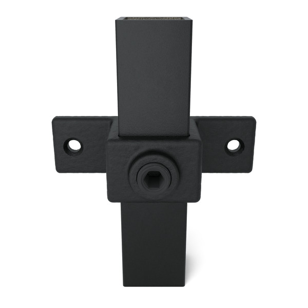 Die 25×25 mm Variante Typ 56S-25 ist ideal für kompakte Rahmen und kleine Geländer. Zwei Befestigungspunkte sorgen für flexible Montageoptionen, während die schwarze Pulverbeschichtung für ein modernes Erscheinungsbild sorgt.