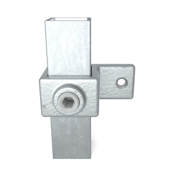 Typ 55S für 25×25 mm Quadratrohre ist optimal für kompakte Konstruktionen. Die Einzellasche ermöglicht das sichere Anbringen von Zubehör wie Seilen, Netzen oder Schildern bei leichten Rahmen oder Geländern.