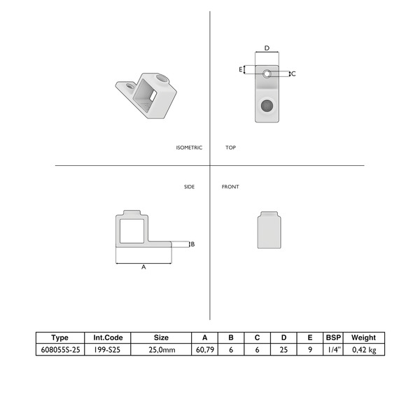 Ösenteil 25×25 mm mit Einzellasche – Typ 199-S25
