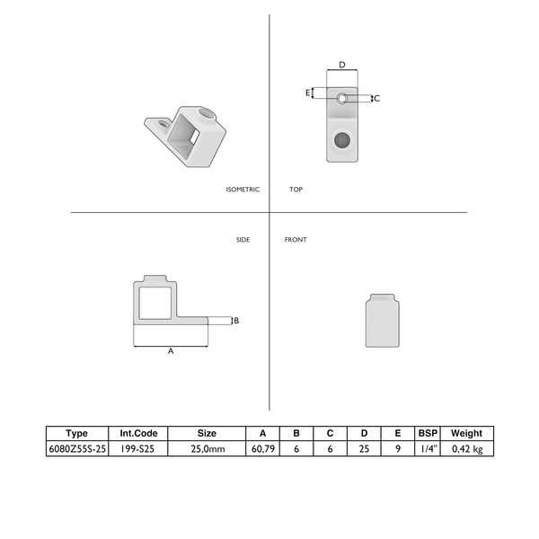 Typ 55S für 25×25 mm Quadratrohre ist ideal für kleine Rahmen, Möbel oder leichte Geländer. Die Einzellasche ermöglicht flexible Montageoptionen bei optisch ansprechender schwarzer Oberfläche.