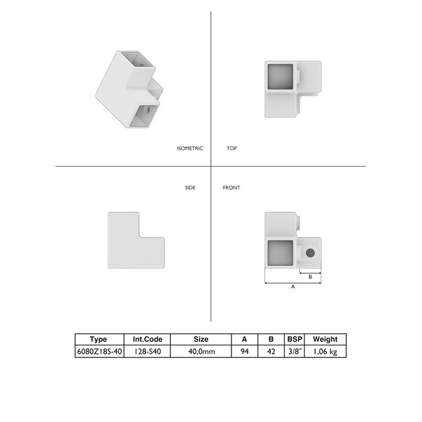 Typ 18S sorgt für eine exakte 90°-Dreifachverbindung und bietet gleichzeitig ein elegantes Erscheinungsbild durch die schwarze Beschichtung.