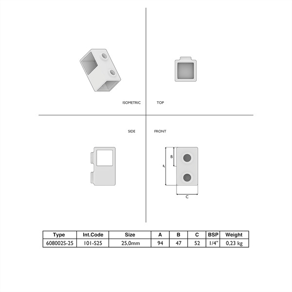 Produktinformationen "Rohrverbinder T-Stück kurz 25 mm quadratisch"