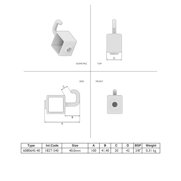 Der Typ 64S-40 ist die robuste Standardvariante für 40×40 mm Quadratrohre. Er überzeugt durch hohe Klemmkraft, langlebige Verzinkung und vielseitige Einsatzmöglichkeiten, beispielsweise bei Geländern, Infotafeln, Abhangsystemen oder modularen Rahmenkonstruktionen.